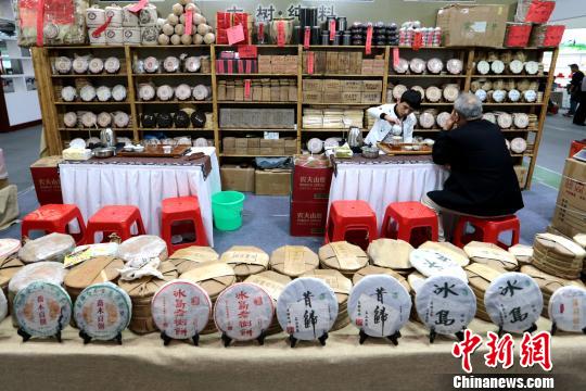 图为展会上琳琅满目的茶叶制品。 张远 摄